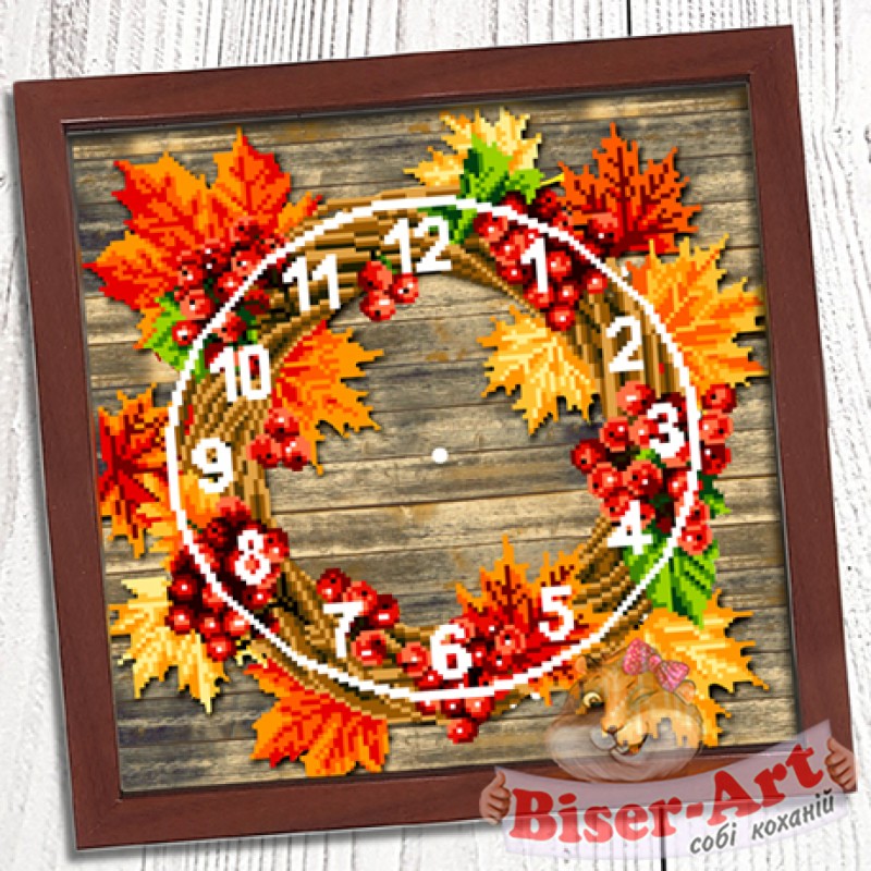 006 Часы Осенние. Схема для частичной вышивки бисером (нитками) на габардине. ТМ Biser-Art.