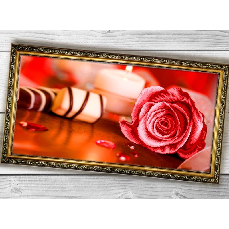 011 Розовая роза. Схема для частичной вышивки бисером (нитками) на габардине. ТМ Biser-Art.