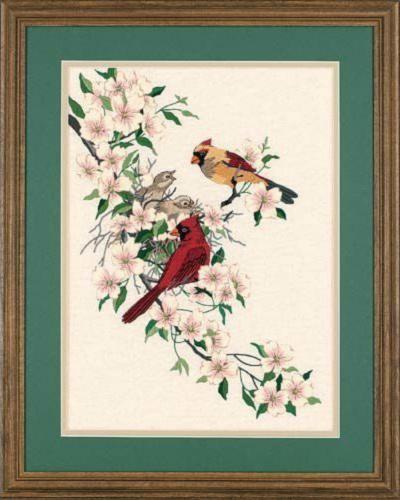 01516 Набор для вышивания гладью DIMENSIONS Cardinals in Dogwood "Кардиналы в Догвуде"