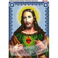 137 Святое сердце Исуса. Схема для частичной вышивки бисером (нитками) на габардине. ТМ Biser-Art.