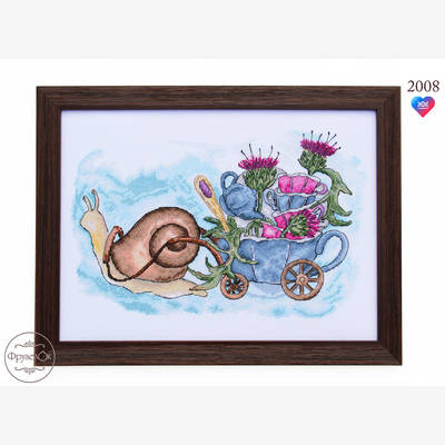 Набор для вышивания крестиком «Улитка с чашками» ТМ ФрузелОк. Основа для вышивания ткань Zweigart равномерного переплетения. В набор входят все необходимые для вышивания крестиком материалы: канва, мулине DMC тридцать девять цветов, две прочные стальные иглы, цветная схема на бумаге, электронная схема для Cross Stitch Saga, инструкция. Дополнительно набор укомплектован органайзером для ниток, с которым процесс будет аккуратным. Размер готовой работы в крестиках 179х117 штук. Для работы понадобятся ножницы и пяльцы. Их можно заказать отдельно в нашем магазине. Техника вышивки: крест, полукрест, шов «назад иголку». Зашивка частичная. Вышивается милая улитка и волшебная повозка. В повозке стоят чашки и яркие розовые цветы. Эта вышивка станет замечательным подарком любителям путешествий, ведь улитка выглядит, как увлечённый турист. Вышитая улитка символизирует стабильность и достаток, сытую, спокойную жизнь. Улитка в доме предвещает богатство и процветание. Вышейте эту картину для украшения дома и в качестве талисмана.