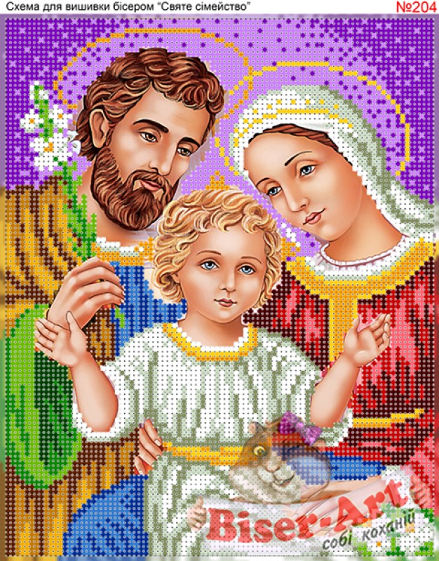 204 Святое семейство. Схема для частичной вышивки бисером (нитками) на габардине. ТМ Biser-Art.