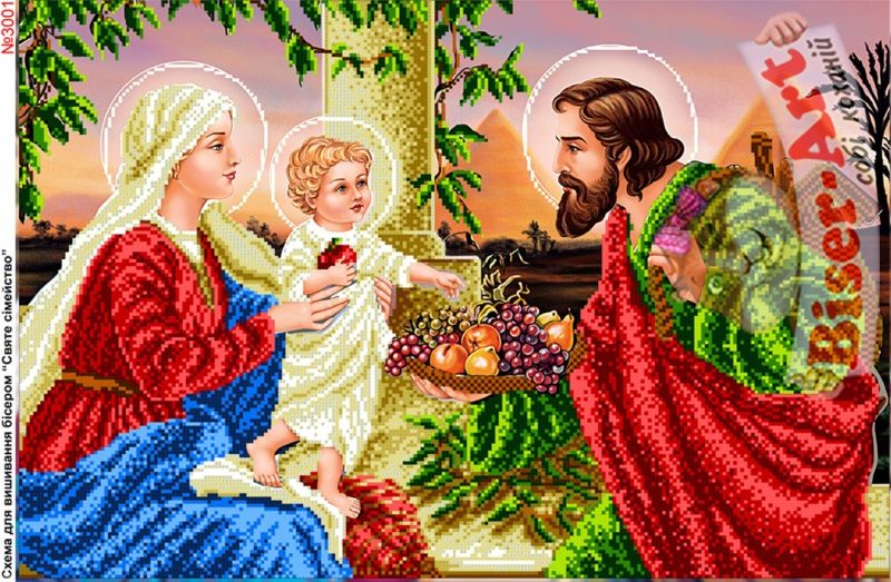 3001 Святое семейство. Схема для частичной вышивки бисером (нитками) на габардине. ТМ Biser-Art.