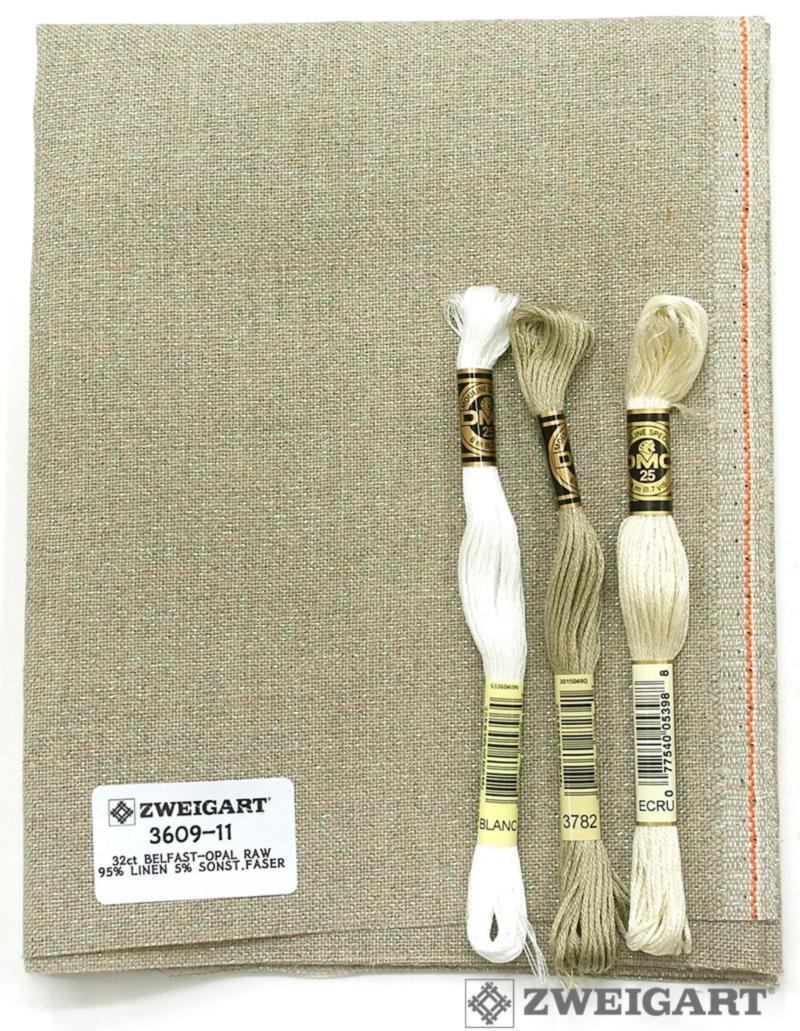 Ткань для вышивания Belfast от немецкого производителя Zweigart — имеет равномерное плетение нитей и слегка неравномерную структуру волокон.