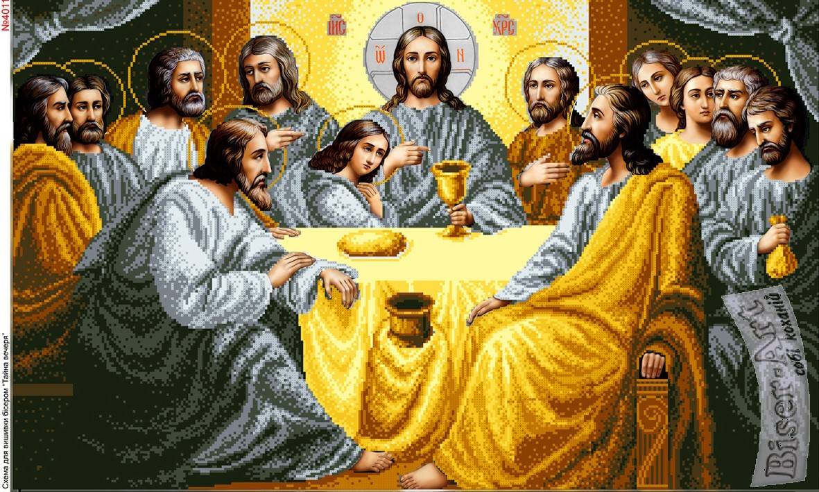 4011 Тайная вечеря. Схема для частичной вышивки бисером (нитками) на габардине. ТМ Biser-Art.
