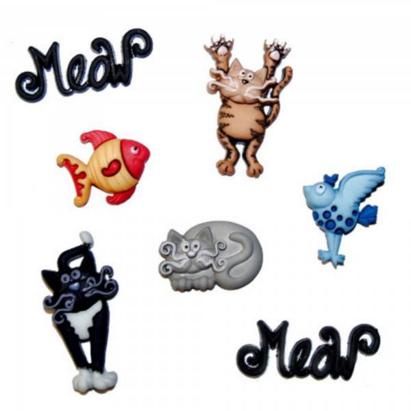 Декоративные пуговицы Dress It Up. Безумные коты. 7 шт в упаковке.