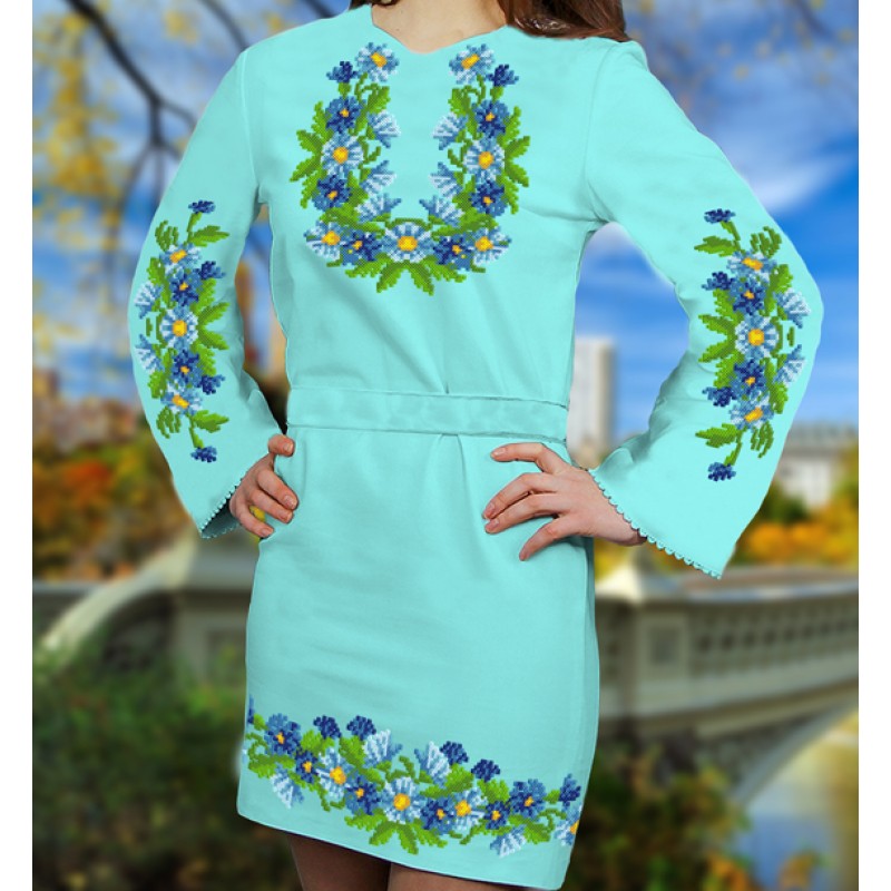 Будьте першим, хто залишив відгук на “60103 Заготовка женского платья под вышивку бисером или нитками (мятный габардин). ТМ Biser-Art.”