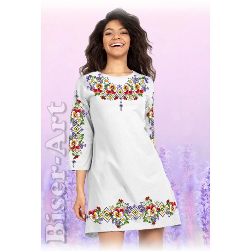 60104 Заготовка Плаття (габардин білий ) під вишивку бисером/нитками тмBiser-Art.