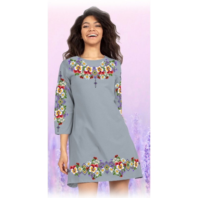 60104-15 Заготовка Плаття (габардин сірий) під вишивку бисером/нитками тмBiser-Art.