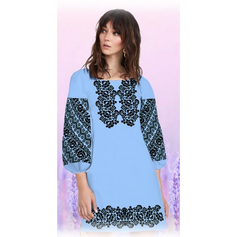 60111-11 Заготовка Плаття (габардин блакитний) під вишивку бисером/нитками тмBiser-Art