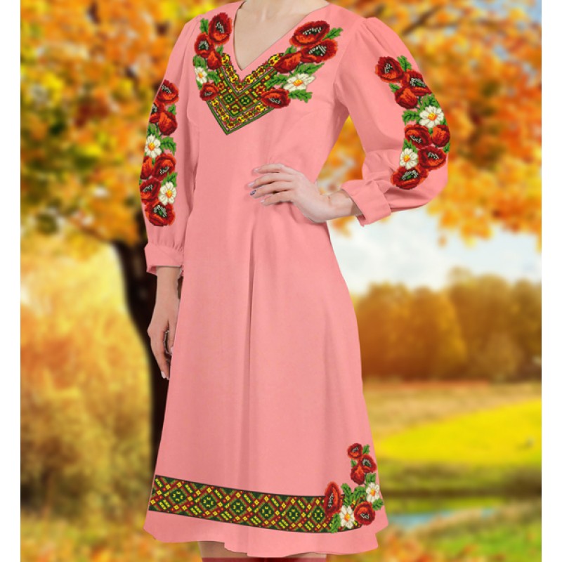 6019 Заготовка женского платья под вышивку бисером или нитками (коралловый габардин). ТМ Biser-Art.
