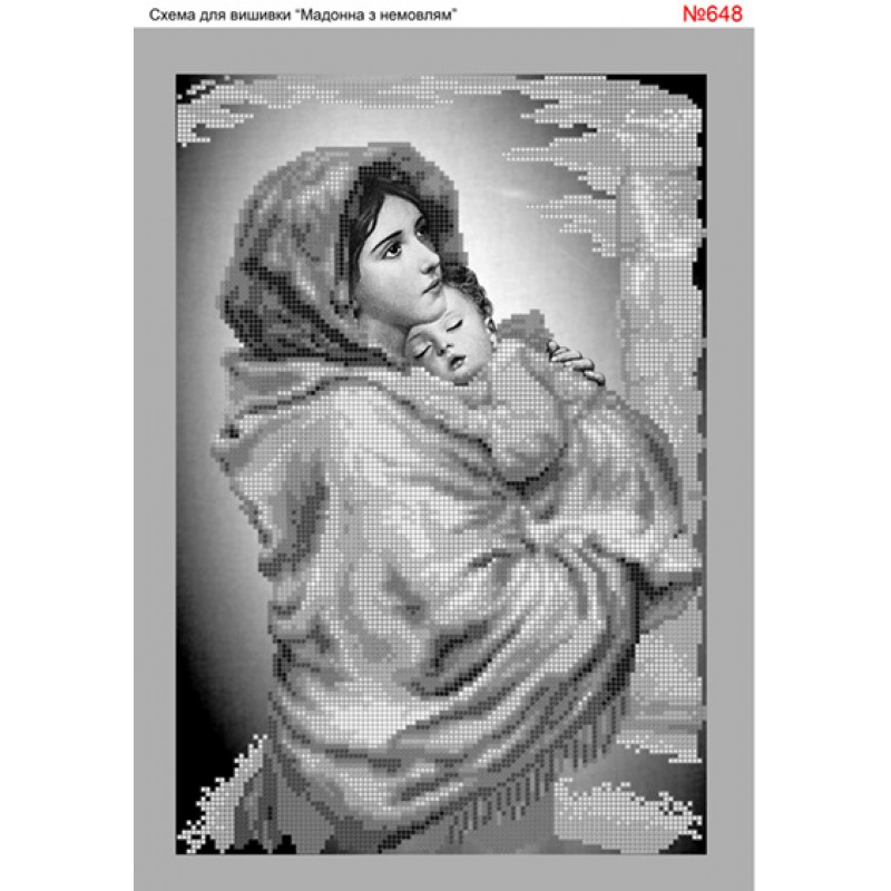 648 Мадонна с младенцем в серых тонах. Схема для частичной вышивки бисером (нитками) на габардине. ТМ Biser-Art.