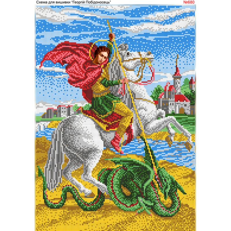 680 Георгий Победоносец. Схема для частичной вышивки бисером (нитками) на габардине. ТМ Biser-Art.