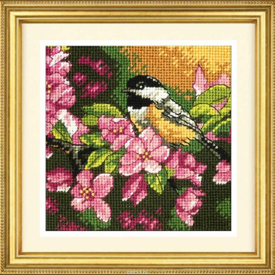 71-07244 Набор для вышивания (гобелен) DIMENSIONS Chikadee in Pink "Синица в розовых цветах"