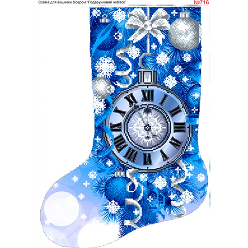 716 Новогодний сапожок большой. Схема для частичной вышивки бисером (нитками) на габардине. ТМ Biser-Art.
