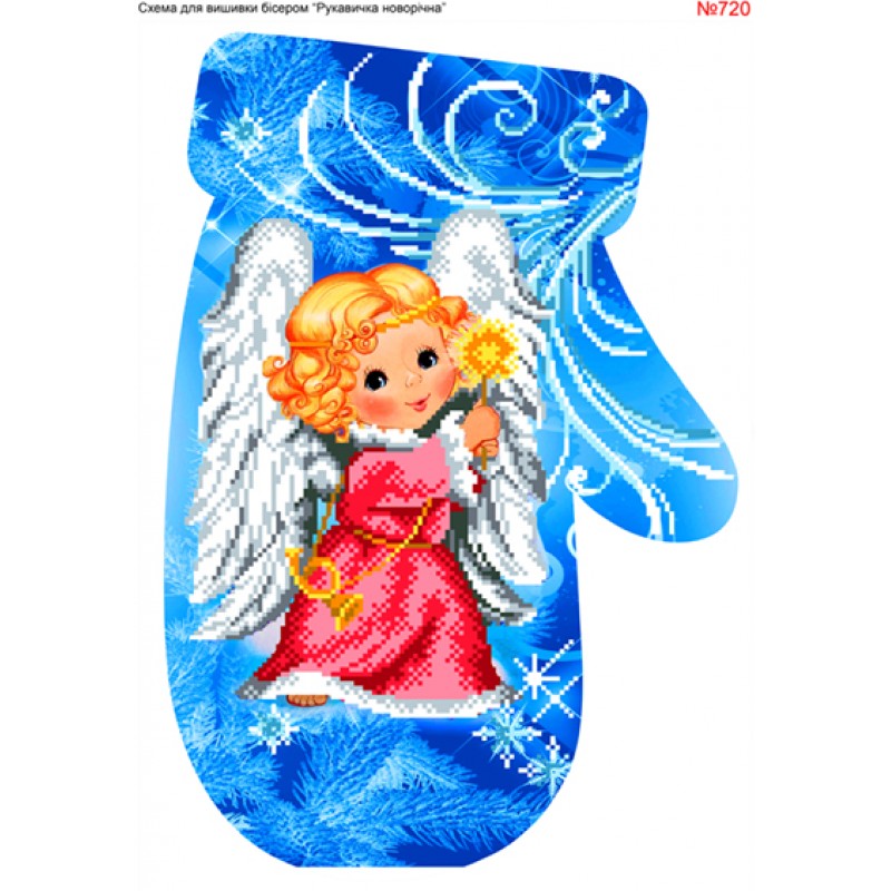 720 Новогодняя рукавичка большая. Схема для частичной вышивки бисером (нитками) на габардине. ТМ Biser-Art.