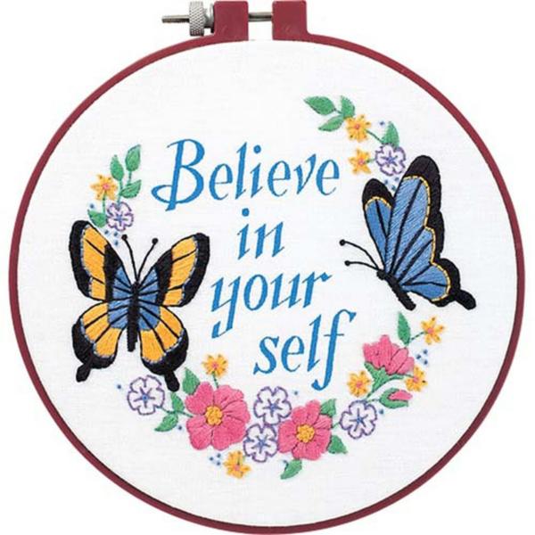 інструкція, тканина для вишивання з нанесеним малюнком (біла), бавовняне муліне Dimensions — 6 кольорів, п`яльця 15,2 см і голка.