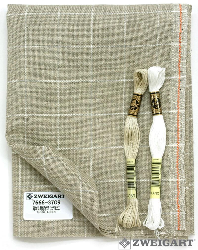 7666/3709 Belfast 32 (ширина 140см) натуральный лен в белую клетку