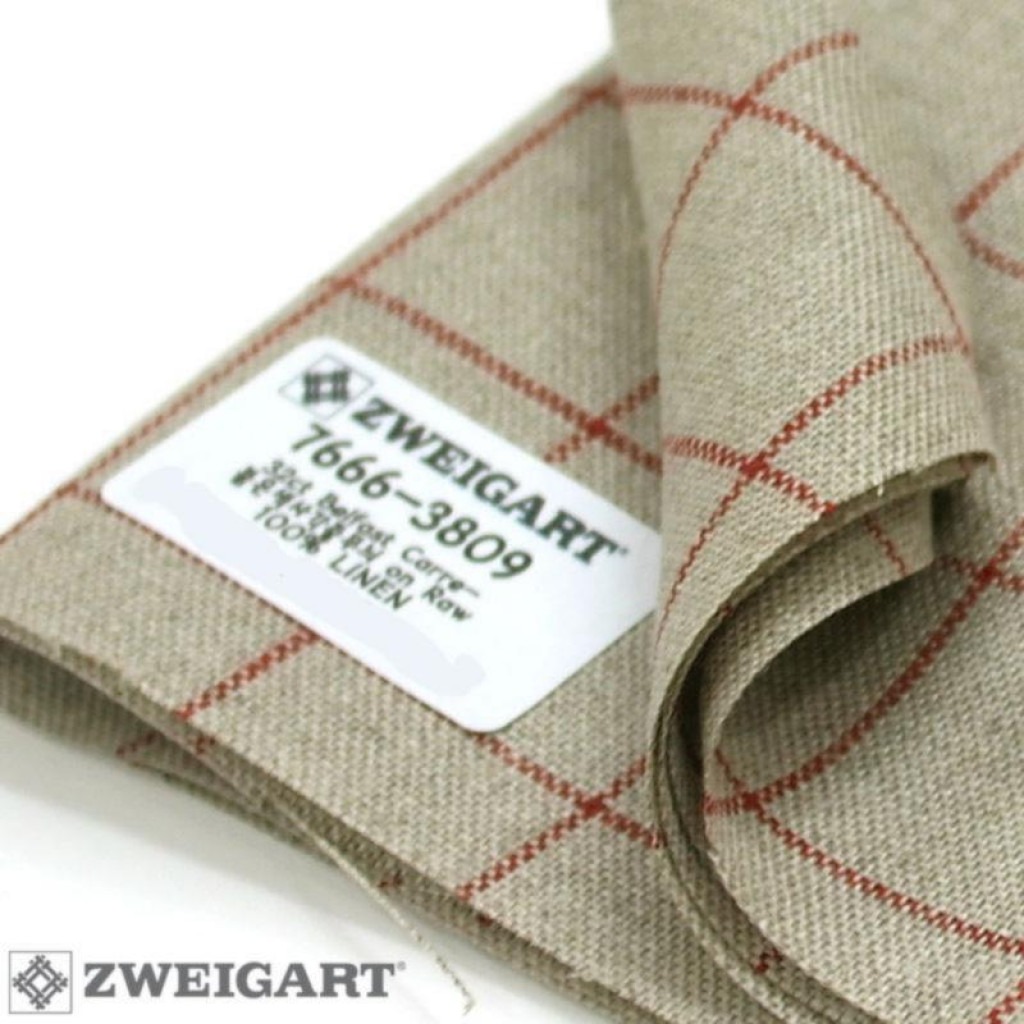 Німецька канва 7666/3809 Канва Belfast 32 Zweigart, натуральний льон в бордову клітку, ширина — 140 см, 100% льон, яка володіє відмінною якістю.