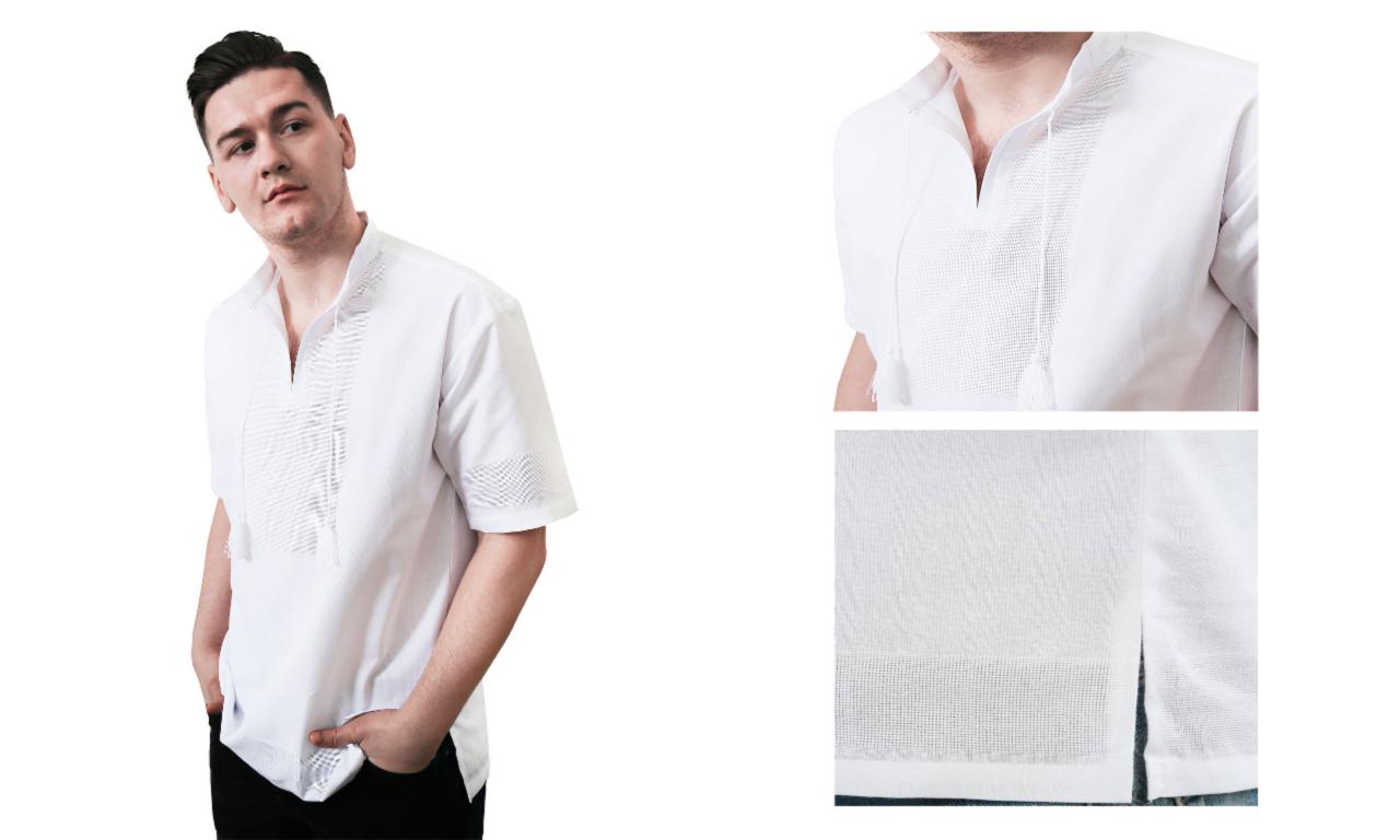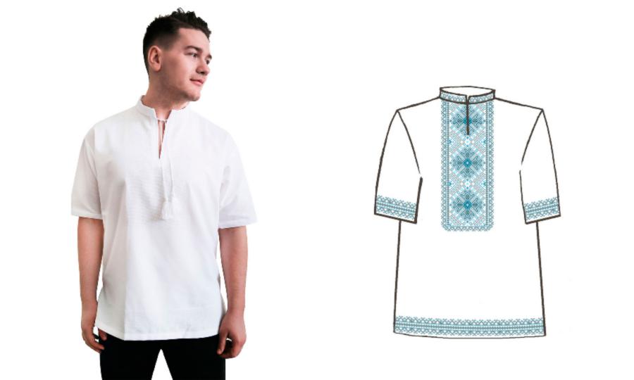 Мужская сорочка, короткий рукав, под вышивку крестиком, белого цвета.