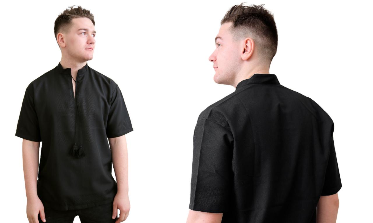 Мужская черная сорочка под вышивку с коротким рукавом.