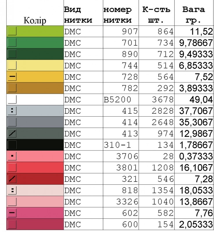• схема для вишивання;
