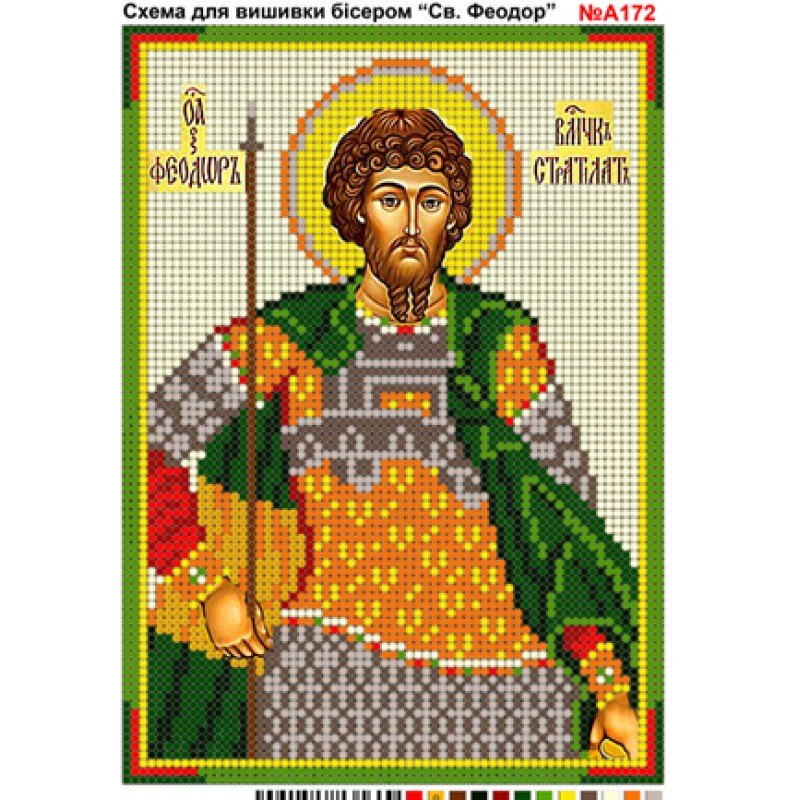 А172 Св.Феодор(Федор). Схема для частичной вышивки бисером (нитками) на габардине. ТМ Biser-Art.