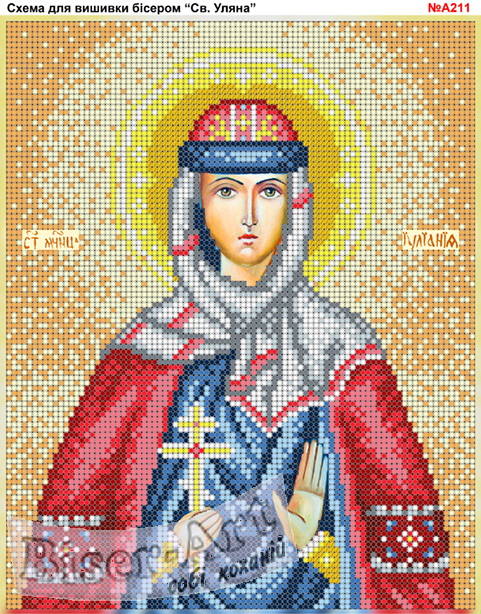 А211 Св.Ульяна. Схема для частичной вышивки бисером (нитками) на габардине. ТМ Biser-Art.
