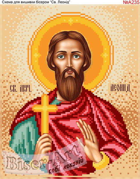 А235 Св.Леонид. Схема для частичной вышивки бисером (нитками) на габардине. ТМ Biser-Art.