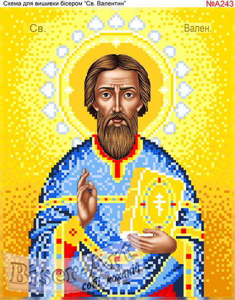 А243 Св.Валентин. Схема для частичной вышивки бисером (нитками) на габардине. ТМ Biser-Art.