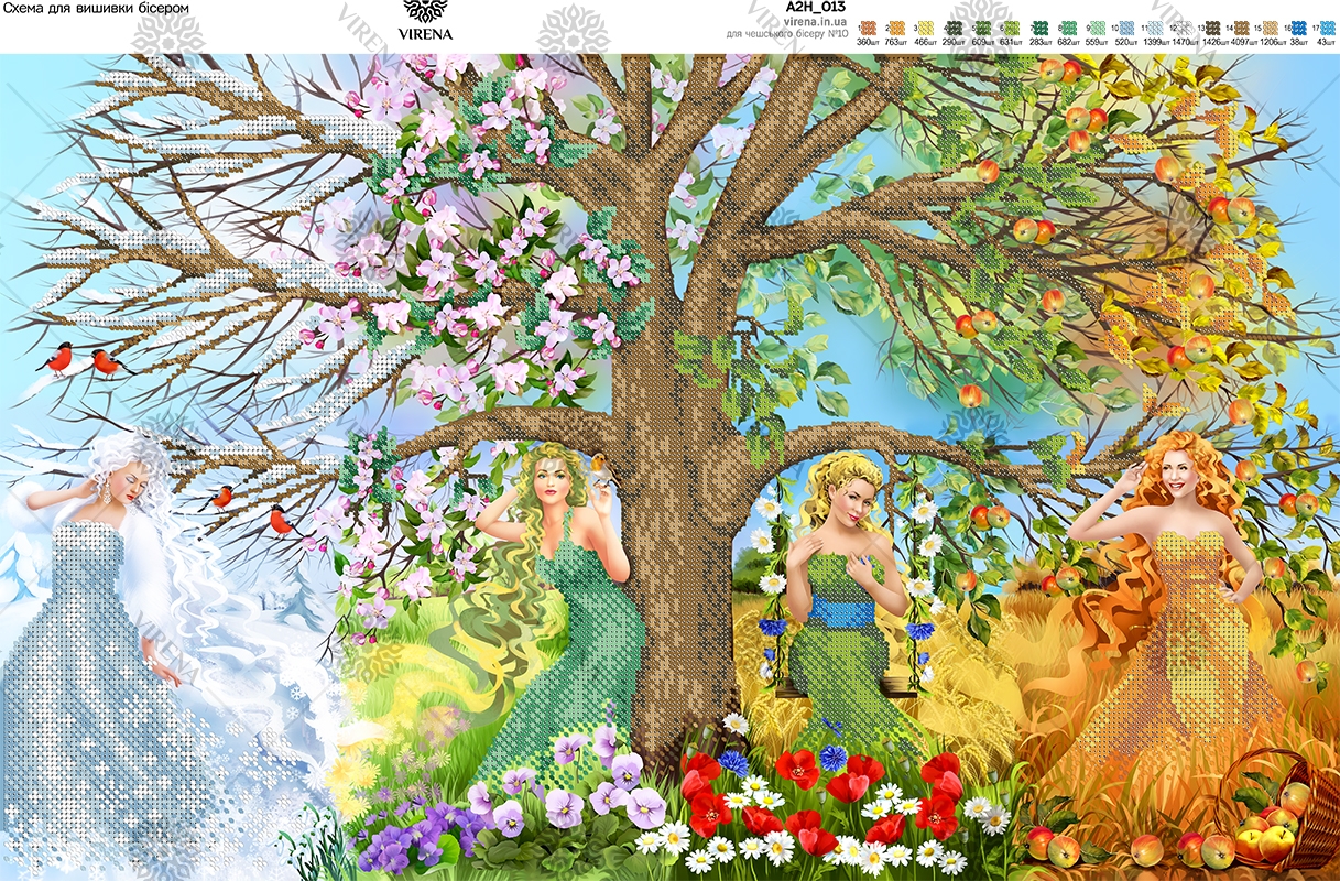А2Н_013 Времена года. Схема для частичной вышивки бисером на габардине. ТМ VIRENA