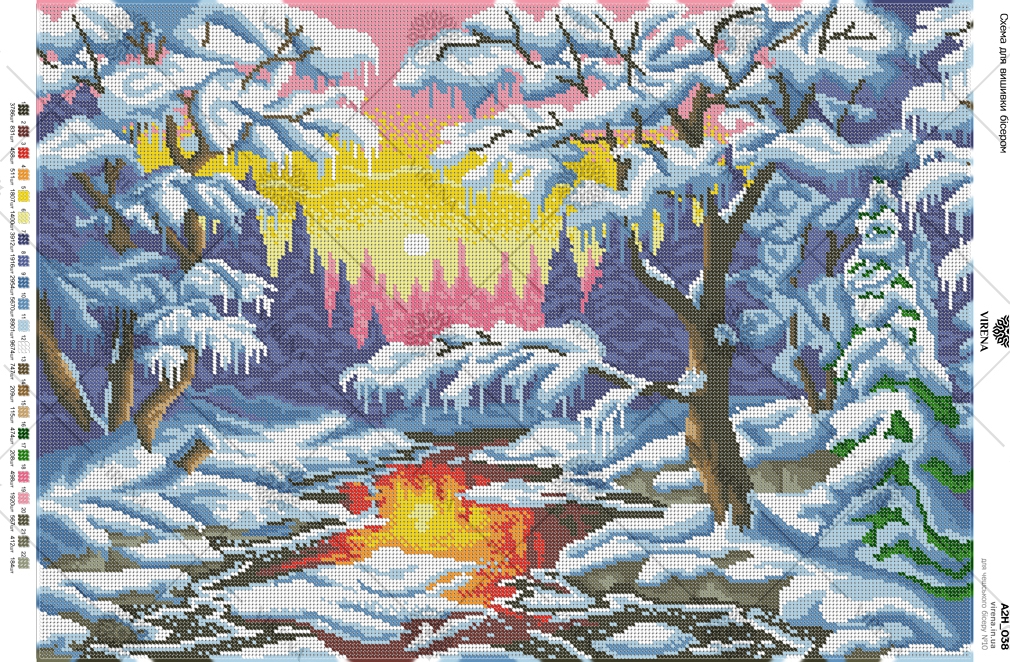 А2Н_038 Зимний закат. Схема для полной зашивки бисером на габардине. ТМ VIRENA