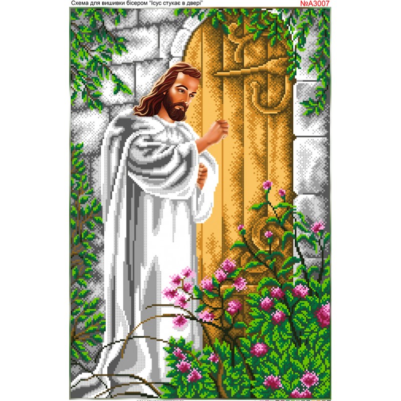 А3007 Иисус стучится в дверь. Схема для частичной вышивки бисером (нитками) на габардине. ТМ Biser-Art.