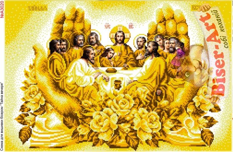 А3020 Тайная вечеря в ладонях (золото). Схема для частичной вышивки бисером (нитками) на габардине. ТМ Biser-Art.