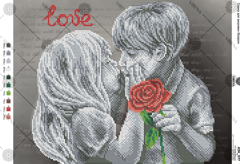 А3Н_077 Первый поцелуй. Схема для частичной вышивки бисером на габардине. ТМ VIRENA