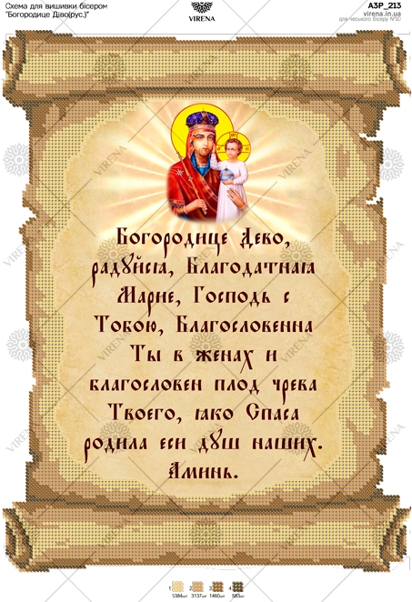 А3Р_213 Молитва. Богородице Дево (на русс. яз.). Схема для частичной вышивки бисером на габардине. ТМ VIRENA