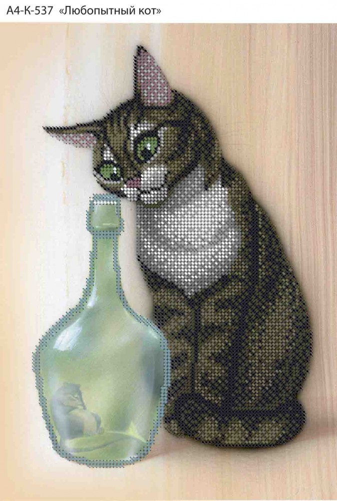 А4-К-537 Любопытный кот Acorns.Схема для вышивки бисером на габардине