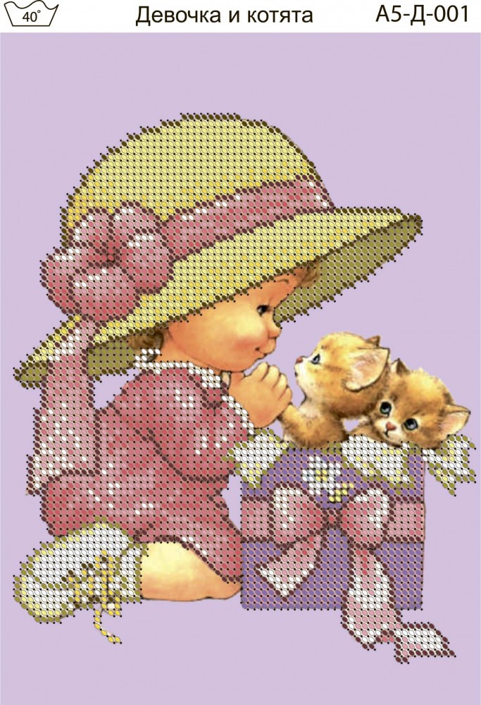 А5-Д-001 Девочка и котята Acorns.Схема для вышивки бисером на габардине.