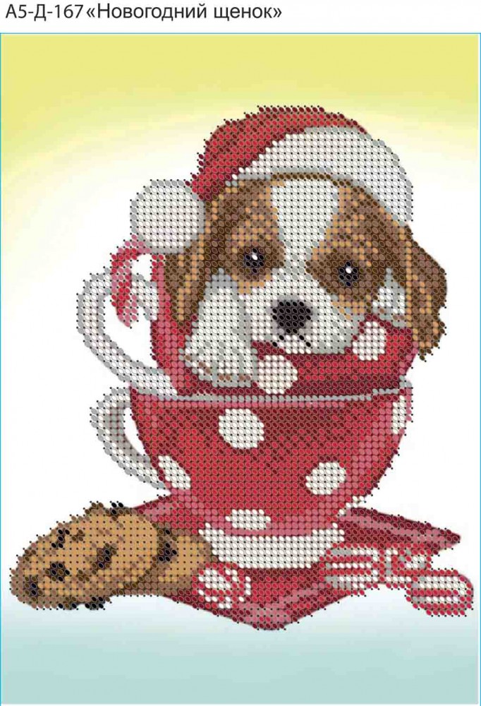 А5-Д-167 Новогодний щенок Acorns.Схема для вышивки бисером на габардине.