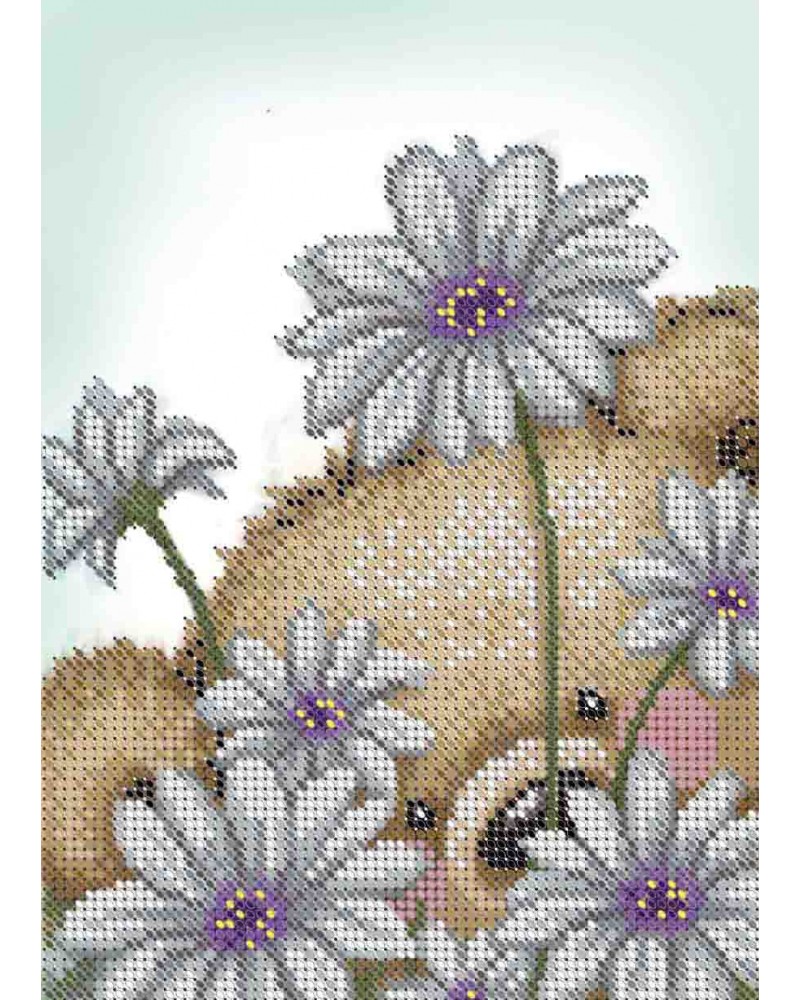 А5-Д-394 Мишка в цветах Acorns.Схема для вышивки бисером на габардине.