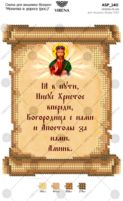 А5Р_140 Молитва в дорогу (на русс. яз.). Схема для частичной вышивки бисером на габардине. ТМ VIRENA