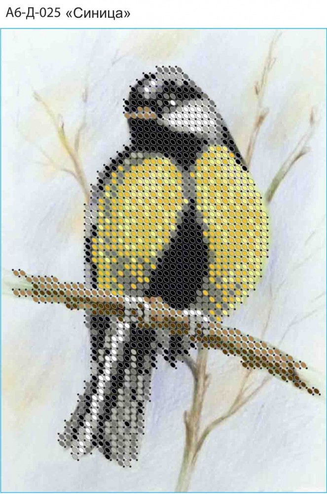 А6-Д-025 Синица Acorns.Схема для вышивки бисером на габардине.