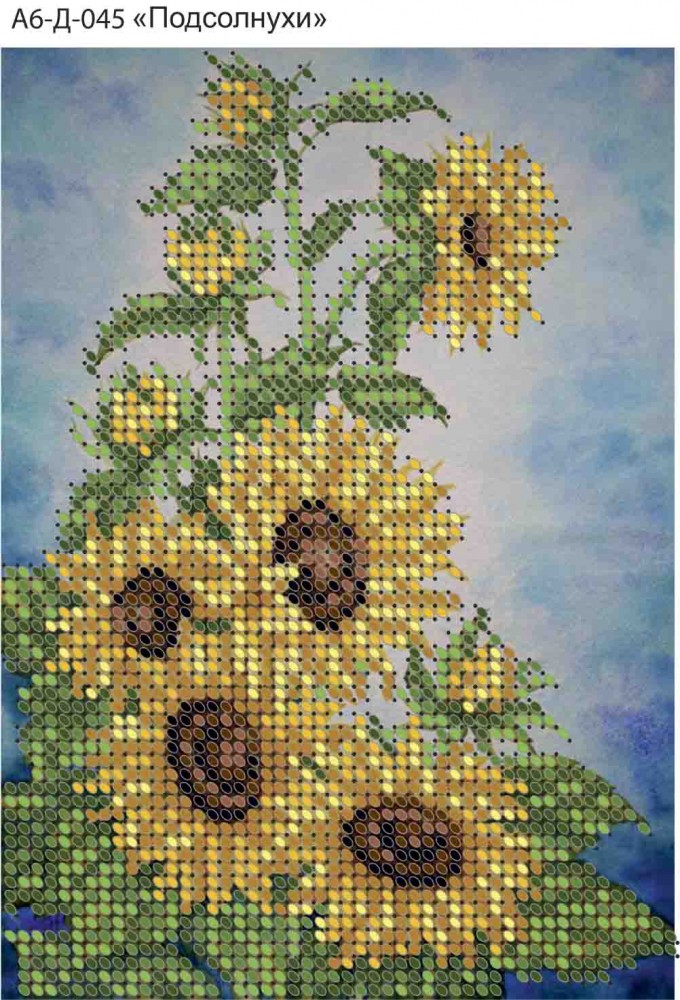 А6-Д-045 Подсолнухи Acorns.Схема для вышивки бисером на габардине.