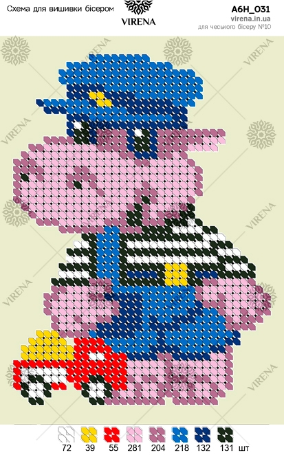 А6Н_031 Гипопотамчик. Схема для частичной вышивки бисером на габардине. ТМ VIRENA