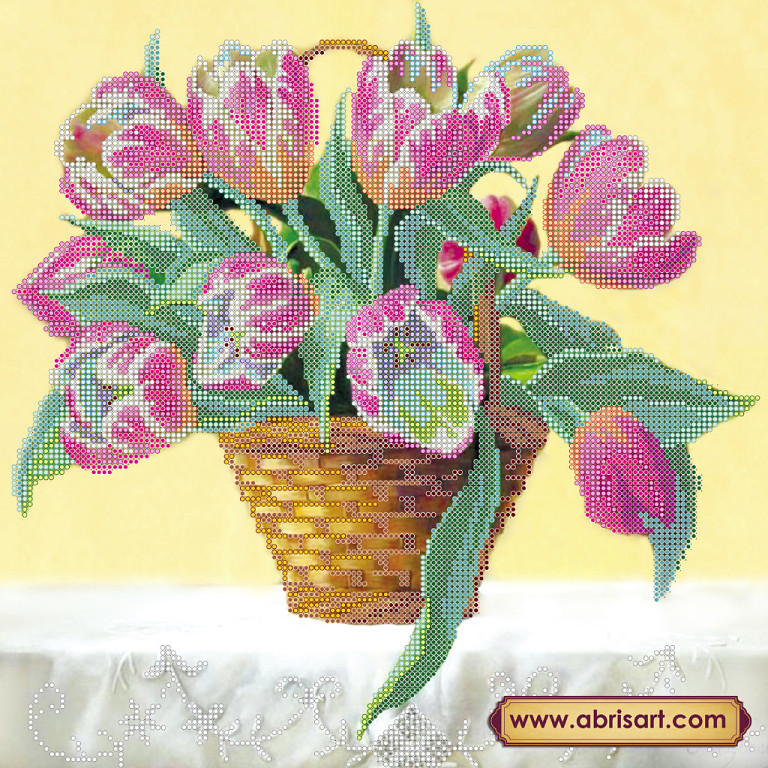 AC-188 Корзина тюльпанов. ТМ Абрис Арт. Схема для частичной вышивки бисером на холсте