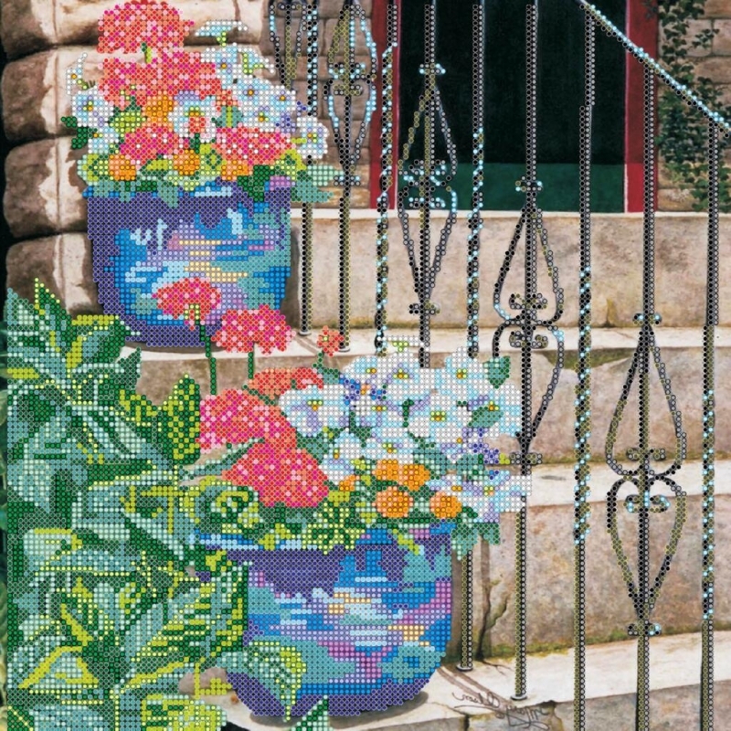 АС-257 Вазон у входа-2. ТМ Абрис Арт. Схема для частичной вышивки бисером на холсте
