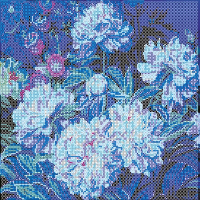 АС-282 Лунные пионы. ТМ Абрис Арт. Схема для частичной вышивки бисером на холсте