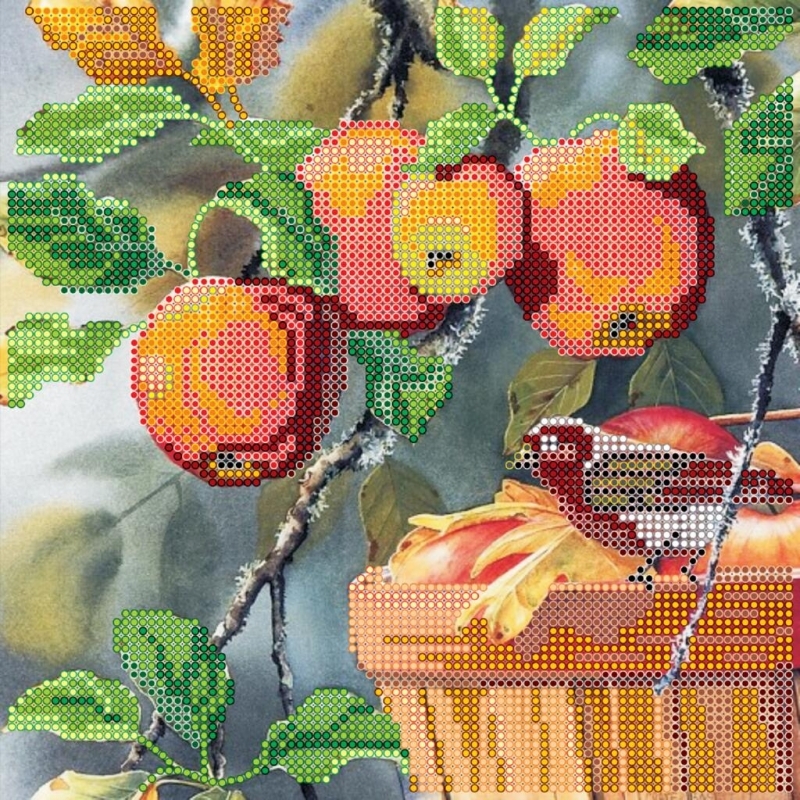 АС-485 Любитель яблок. ТМ Абрис Арт. Схема для частичной вышивки бисером на холсте