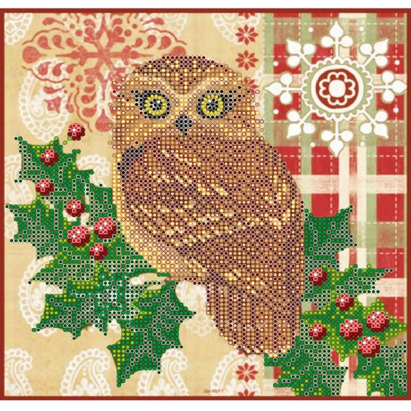 АС-523 Сова и остролист. ТМ Абрис Арт. Схема для частичной вышивки бисером на холсте