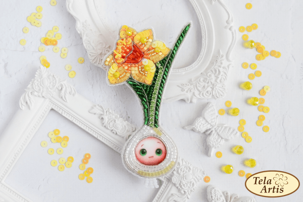 У набір для вишивки бісером брошки «Б-032 Малюк Нарцис» від ТМ «Tela Artis» входить: